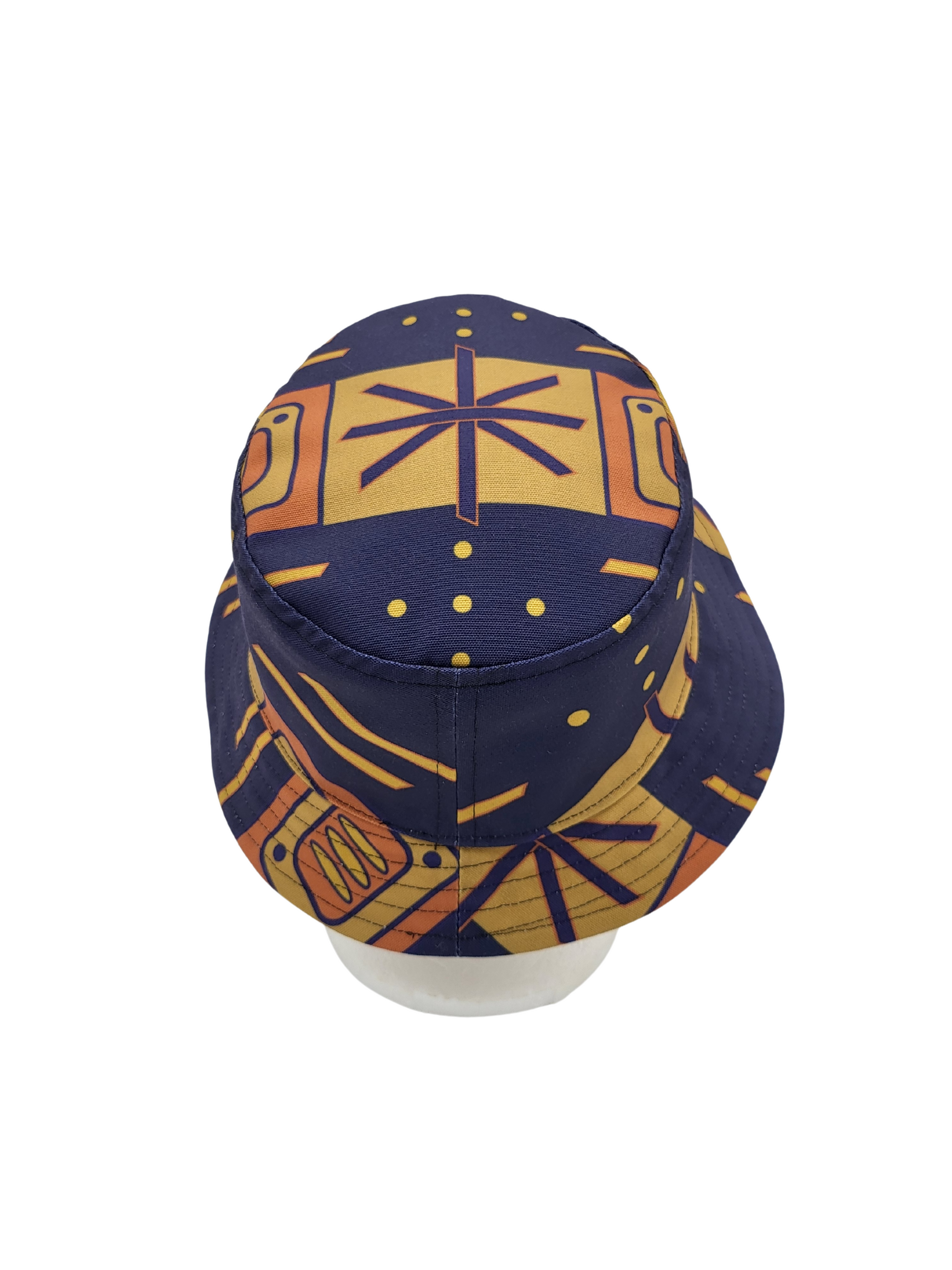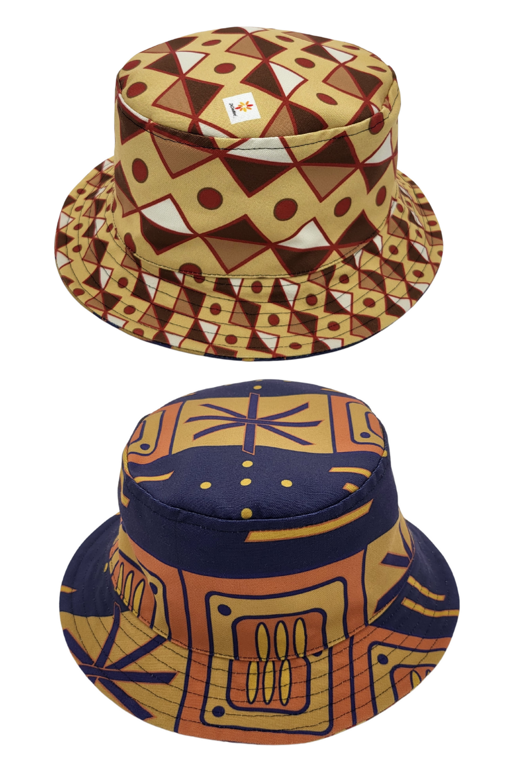 Classic Bucket Style Reversible Hat printed with our original "Mud Cloth Pattern 2" design on one side and our "Indigo Pattern 2" design on the other.