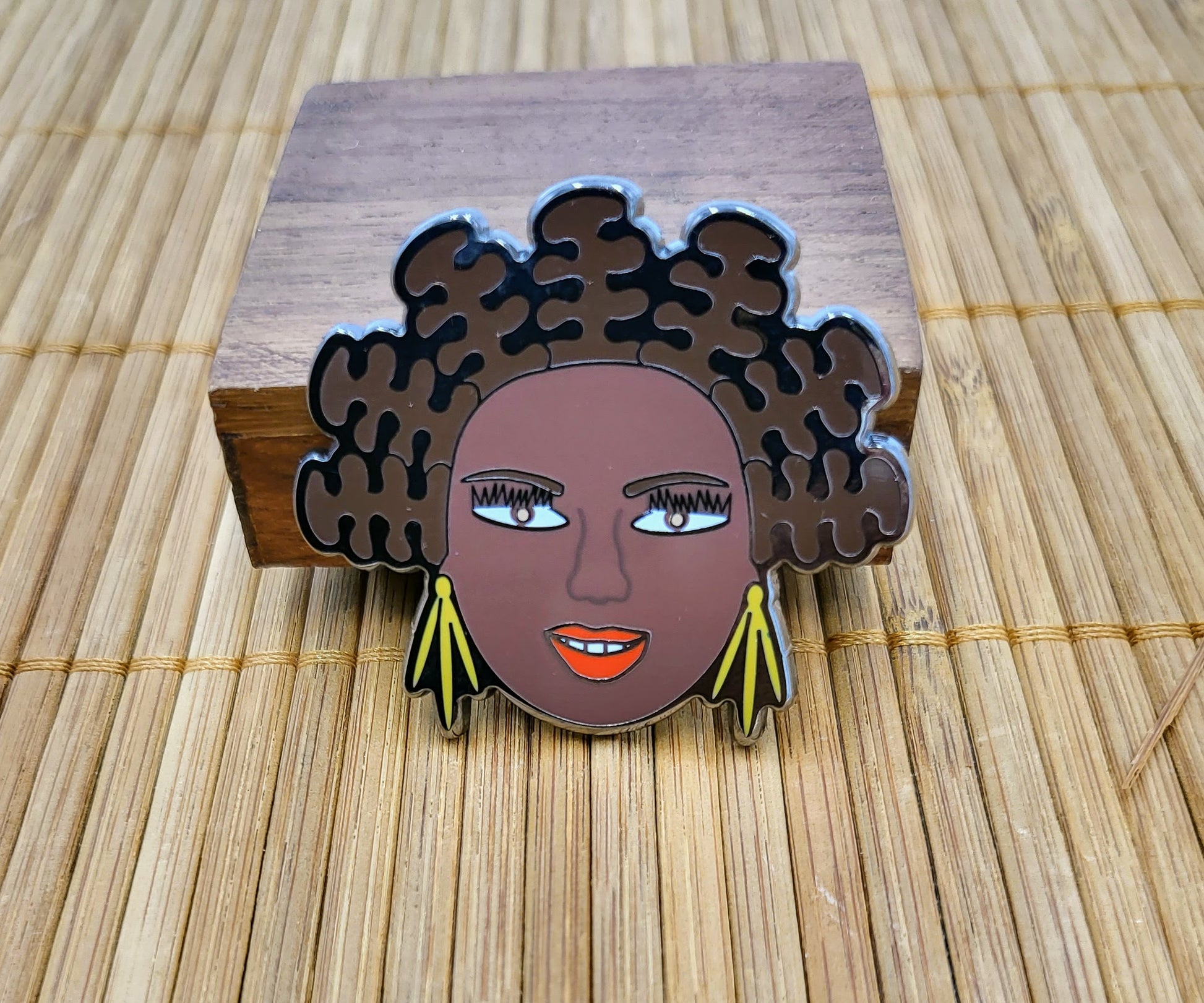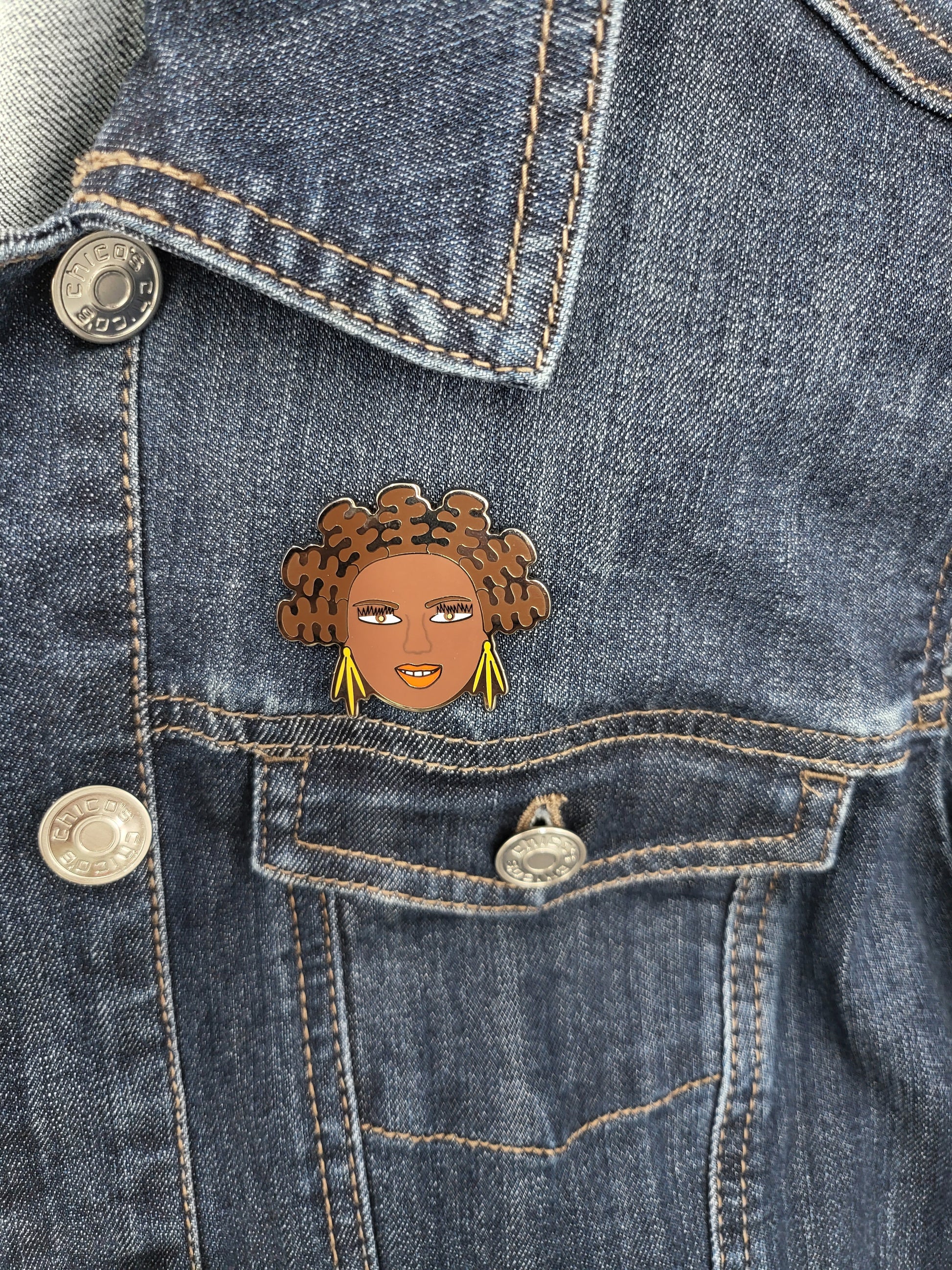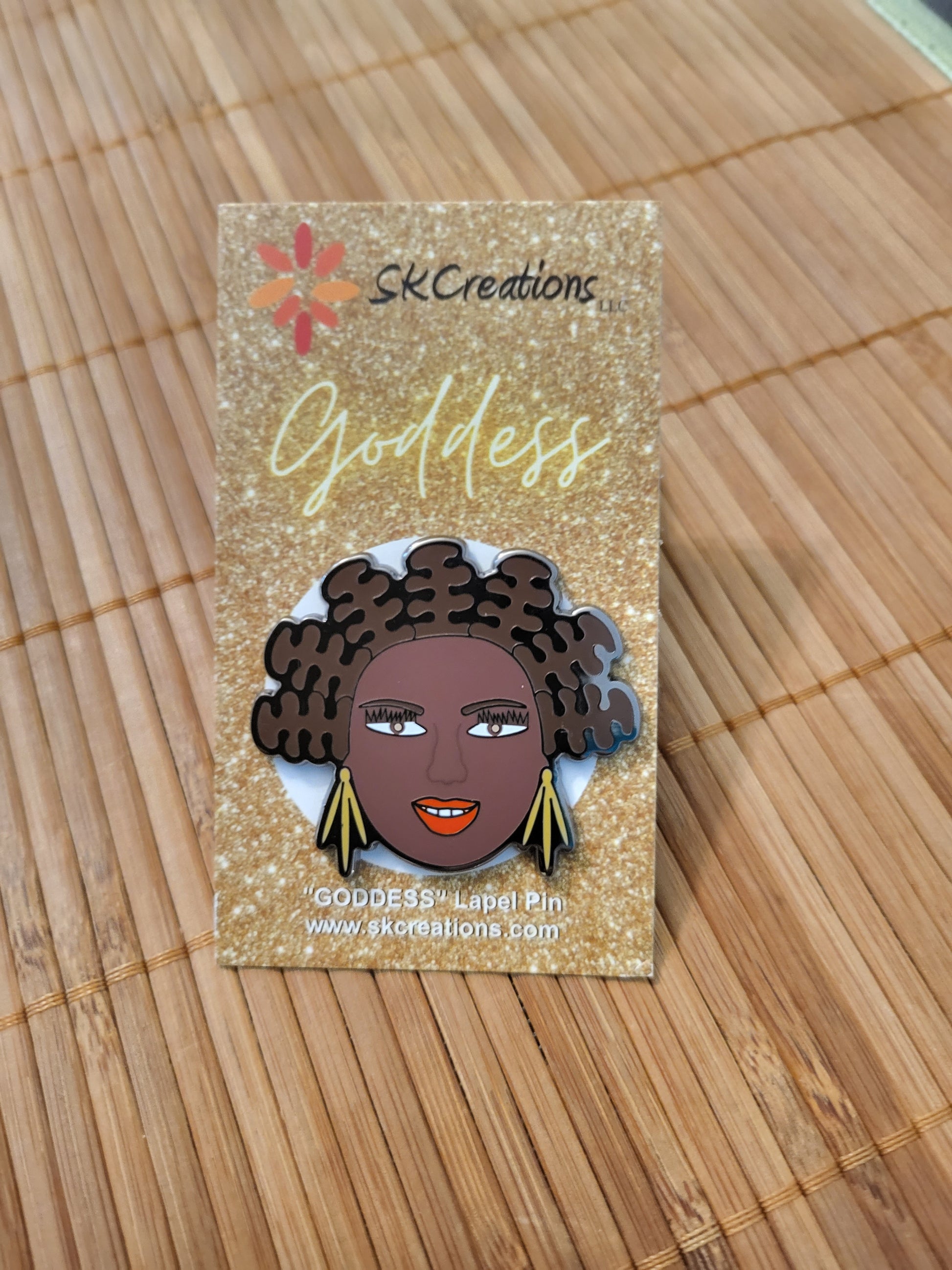 Our original Goddess design is now available in a Lapel Pin. This beautiful sister is smiling because she is loving her stylish bantu knots, a traditional African hairstyle that represents a sense of pride.