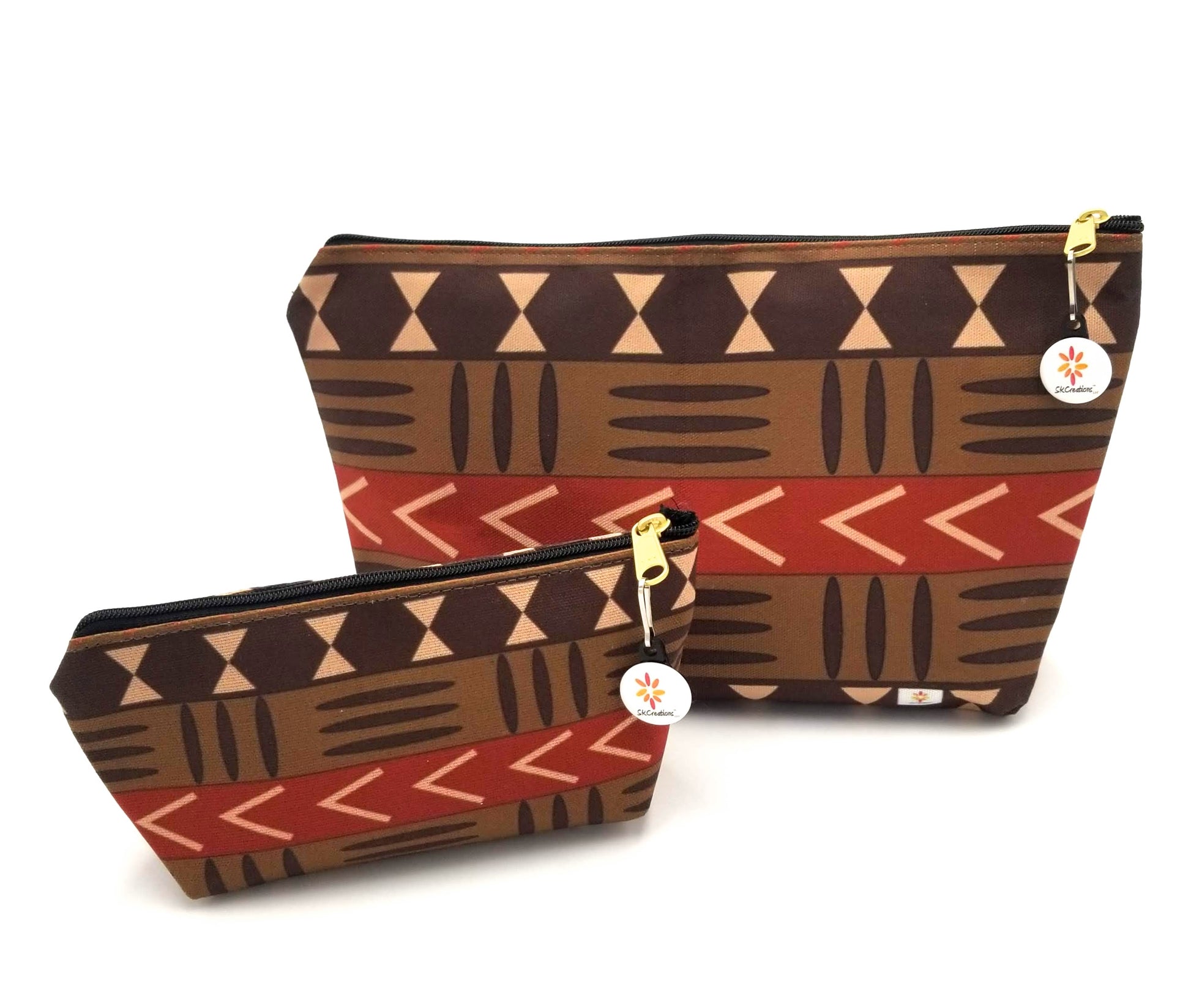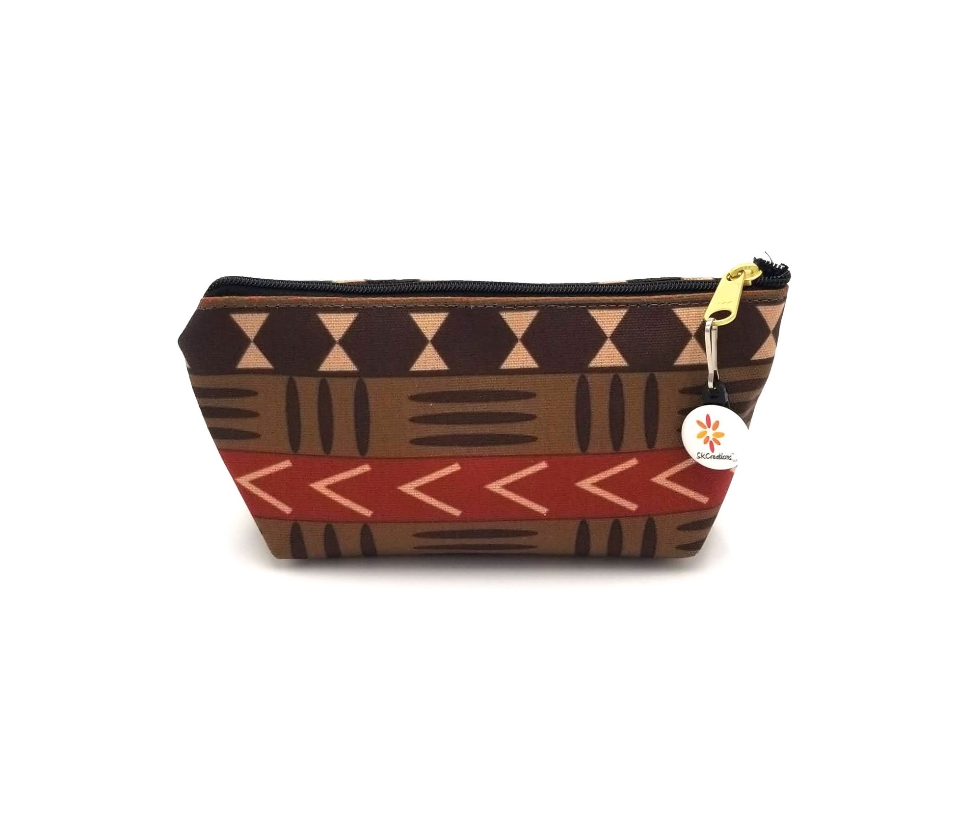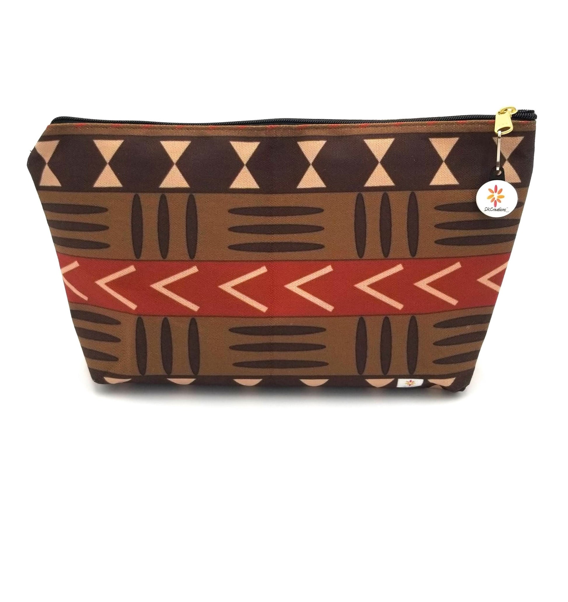 Our original artwork "Mud Cloth Pattern 1" © digitally printed onto T-Bottom Accessory Pouches. Choose the Small or Large Pouch to keep all of your accessories organized.