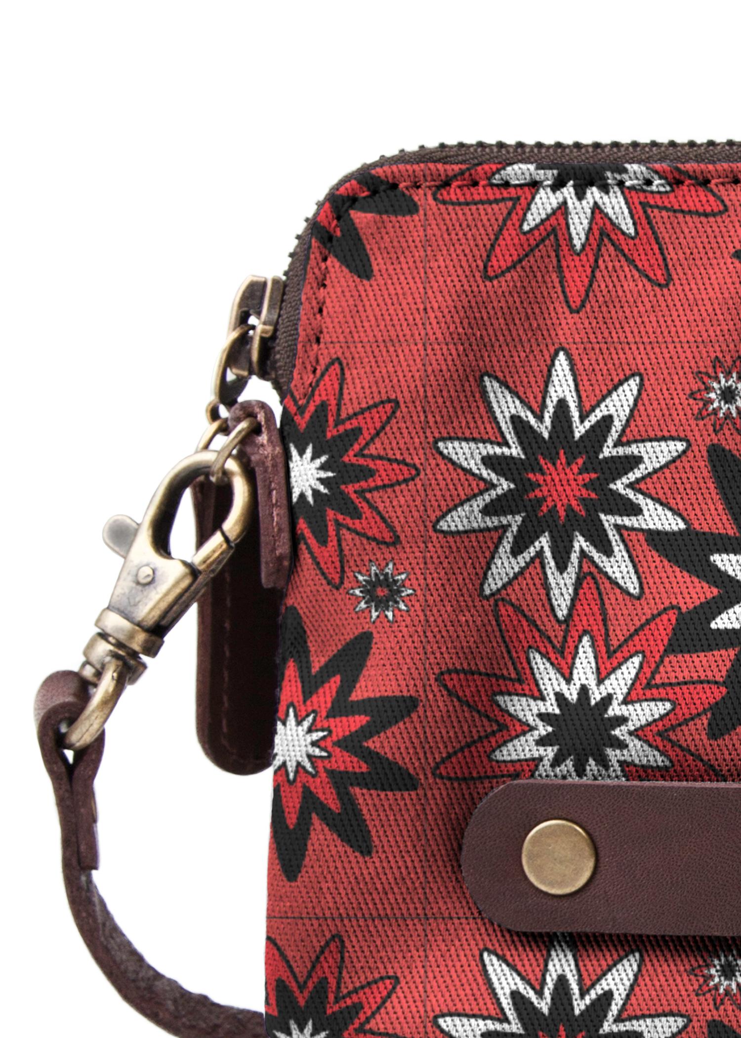 Our original artwork "Blooming Happy - Strong" © digitally printed onto a statement Clutch Bag. Carry it with the detachable crossbody strap or remove the strap and use the convenient back leather strip and carry as a clutch.