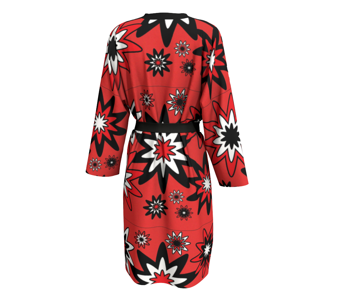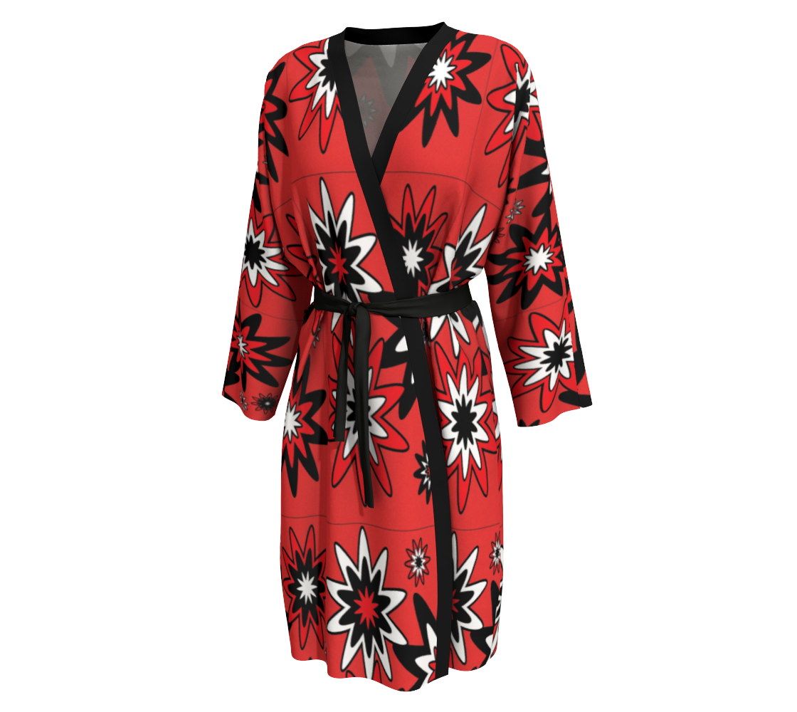 Our original artwork "Blooming Happy - Strong" © digitally printed onto a beautiful Kimono, available in two fabric options:
