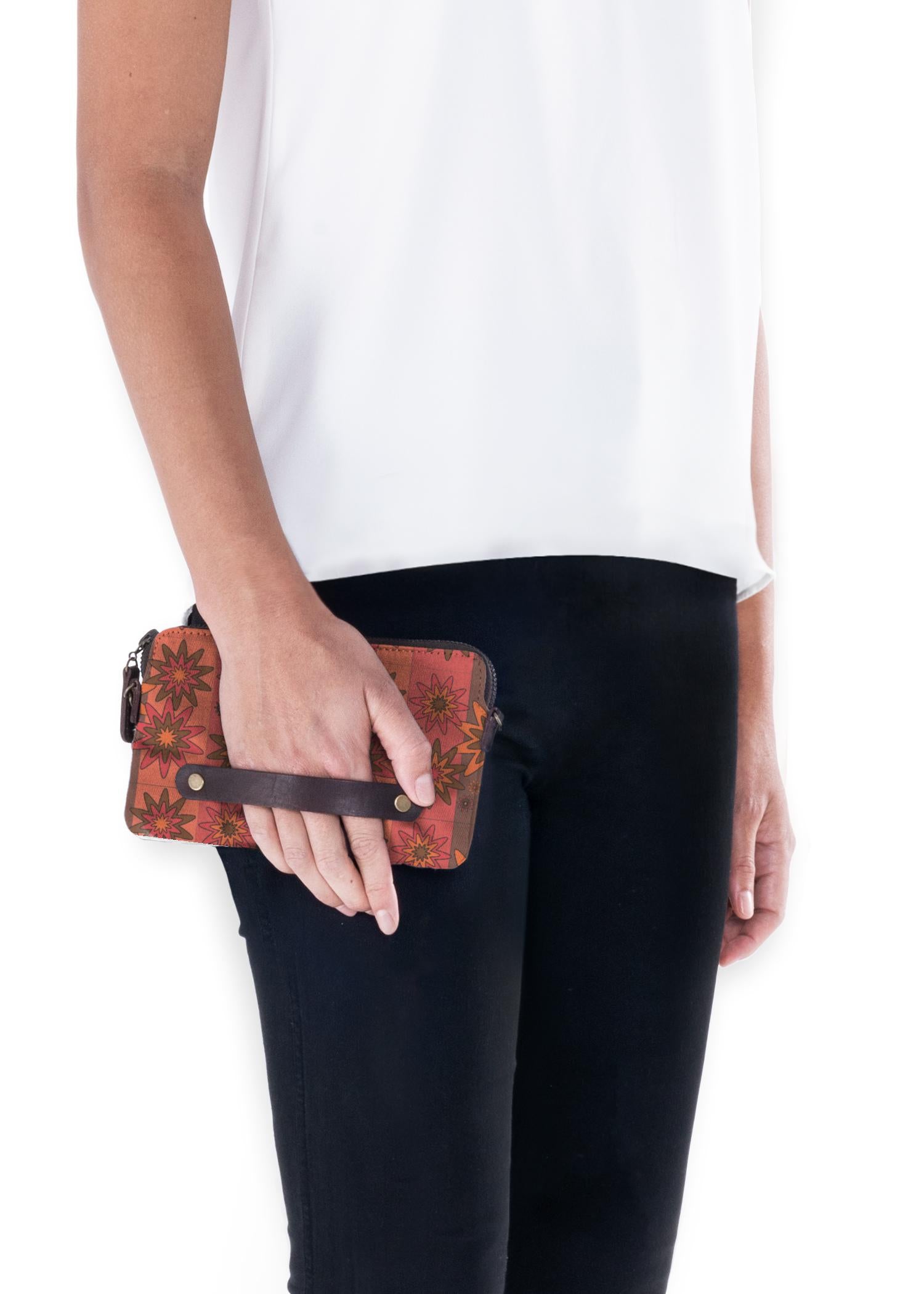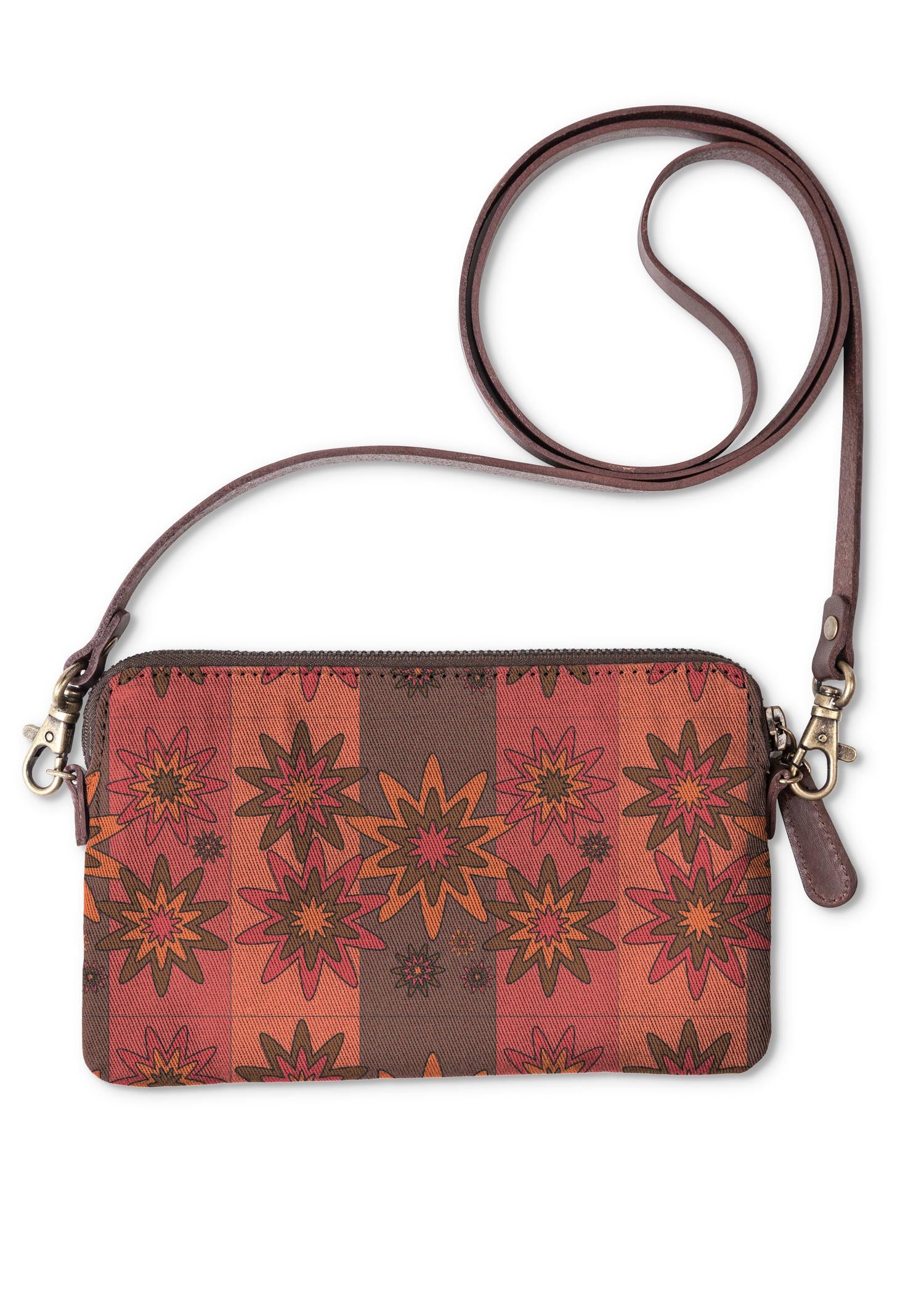 Our original artwork "Blooming Happy - Warm" © digitally printed onto a statement Clutch Bag. Carry it with the detachable crossbody strap or remove the strap and use the convenient back leather strip and carry as a clutch.