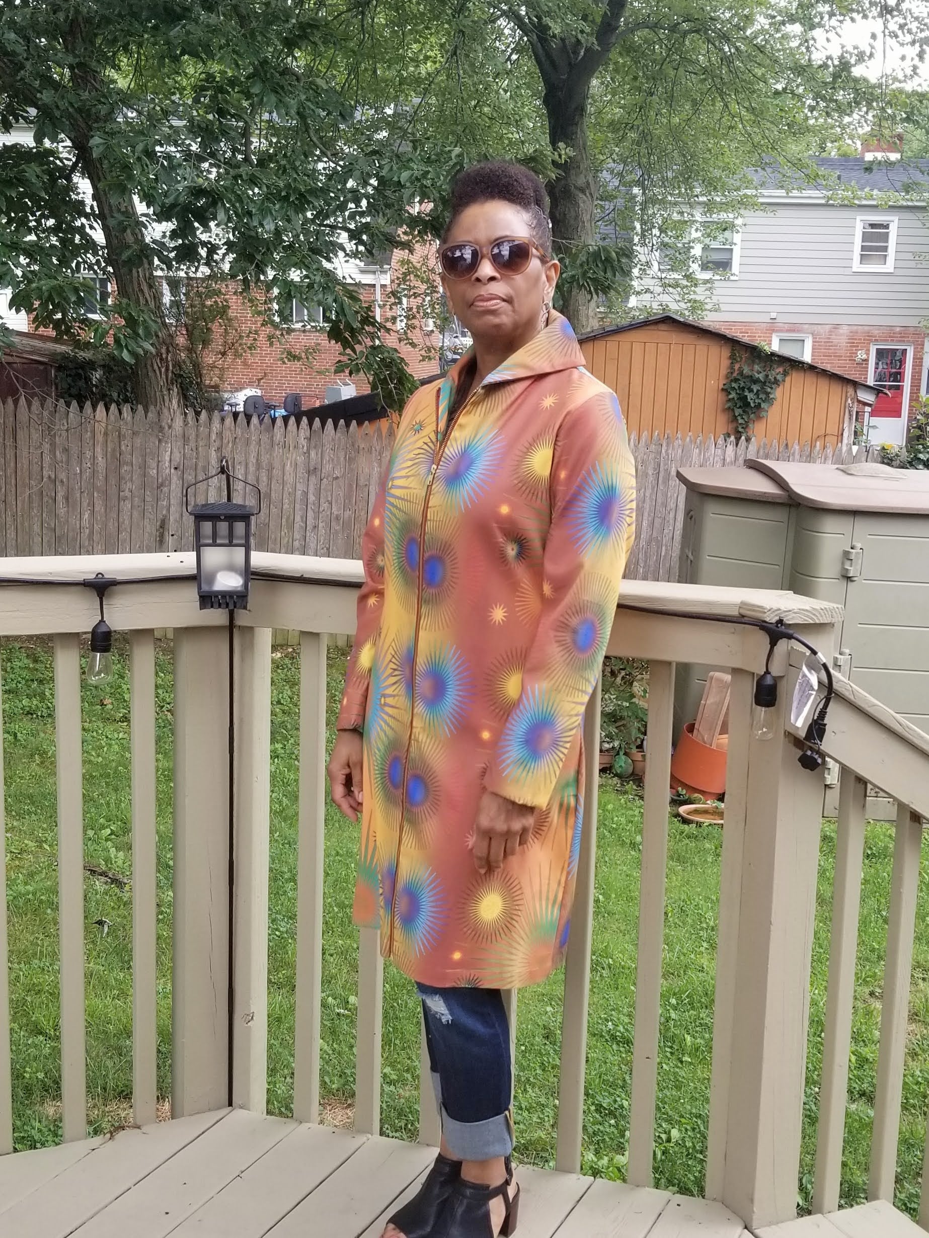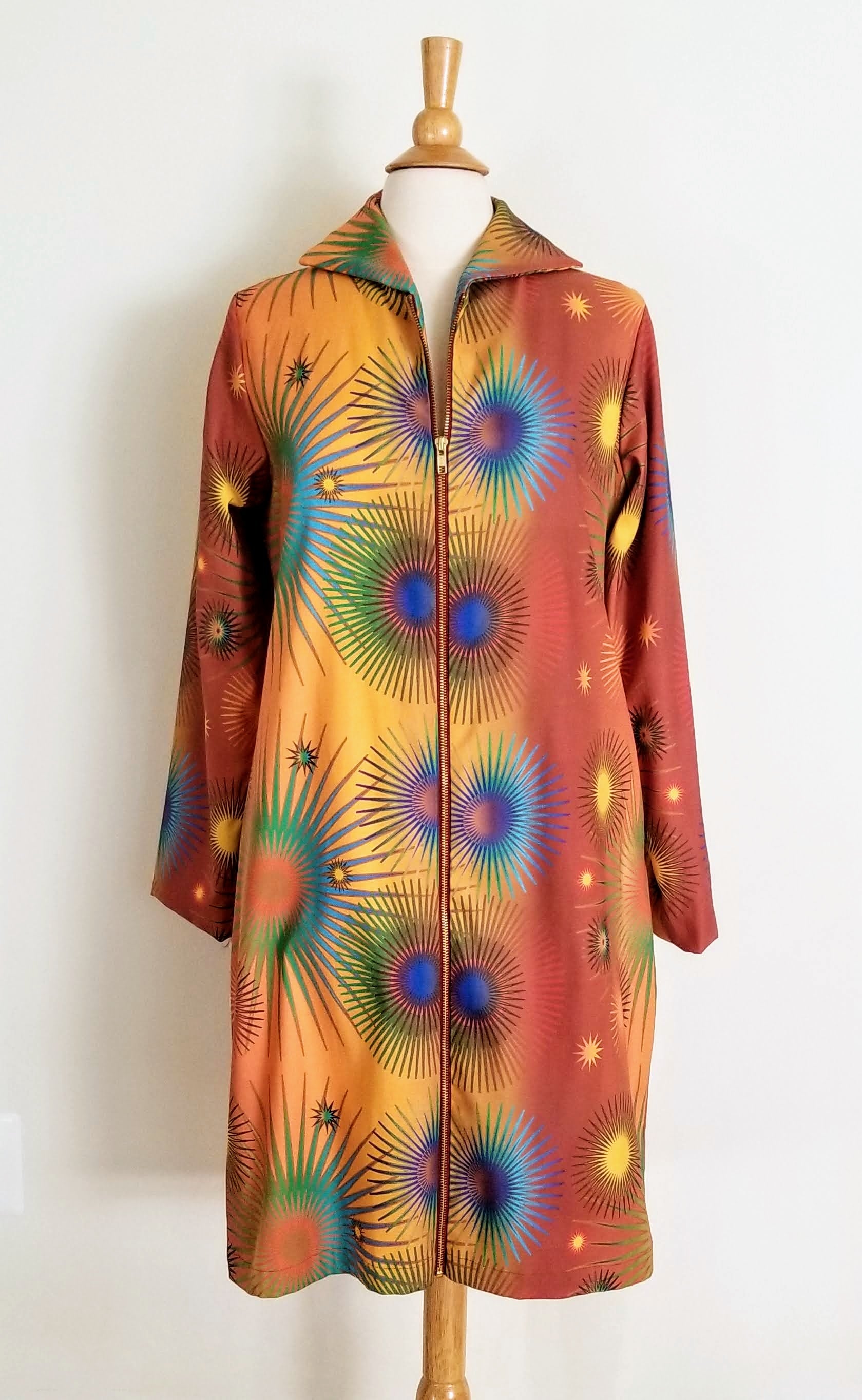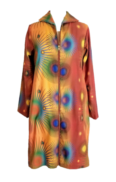 Who says a coat has to look drab? That definitely is not the case with our "High Vibrations" Coat, printed with our original artwork. When you step out in it you will feel as energetic as its name, and others around you will be in awe. It's the perfect weight for Fall weather and can also be worn as a topper over anything from jeans to a little black dress. It's the perfect addition to your wardrobe.