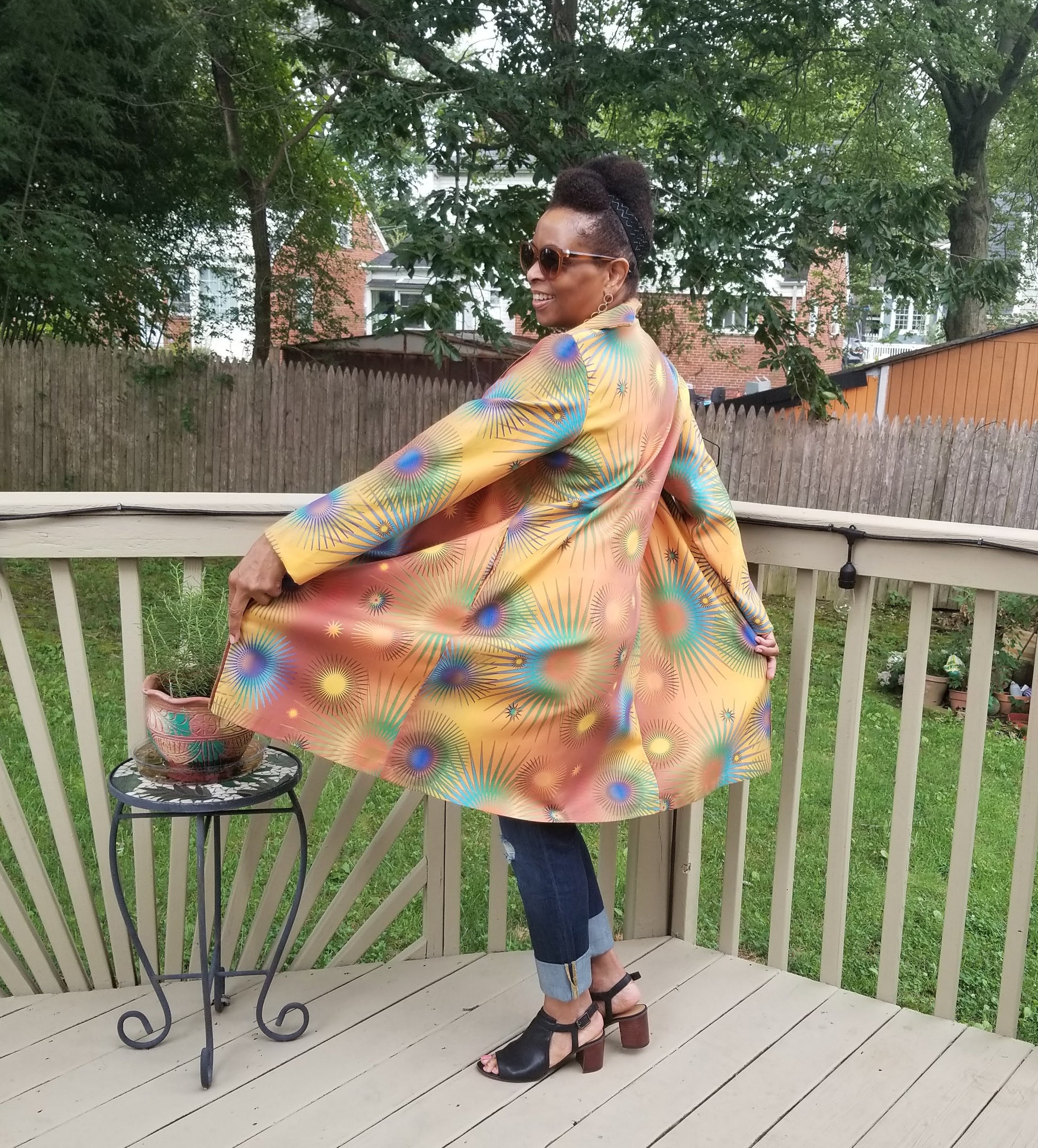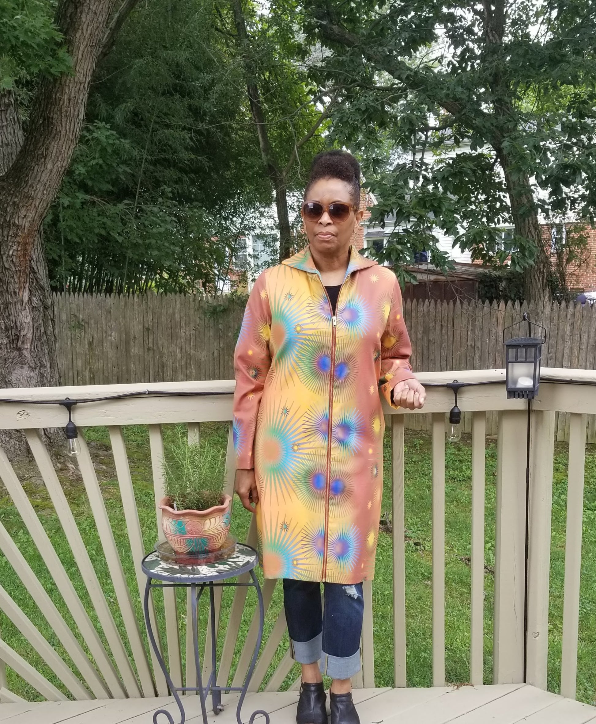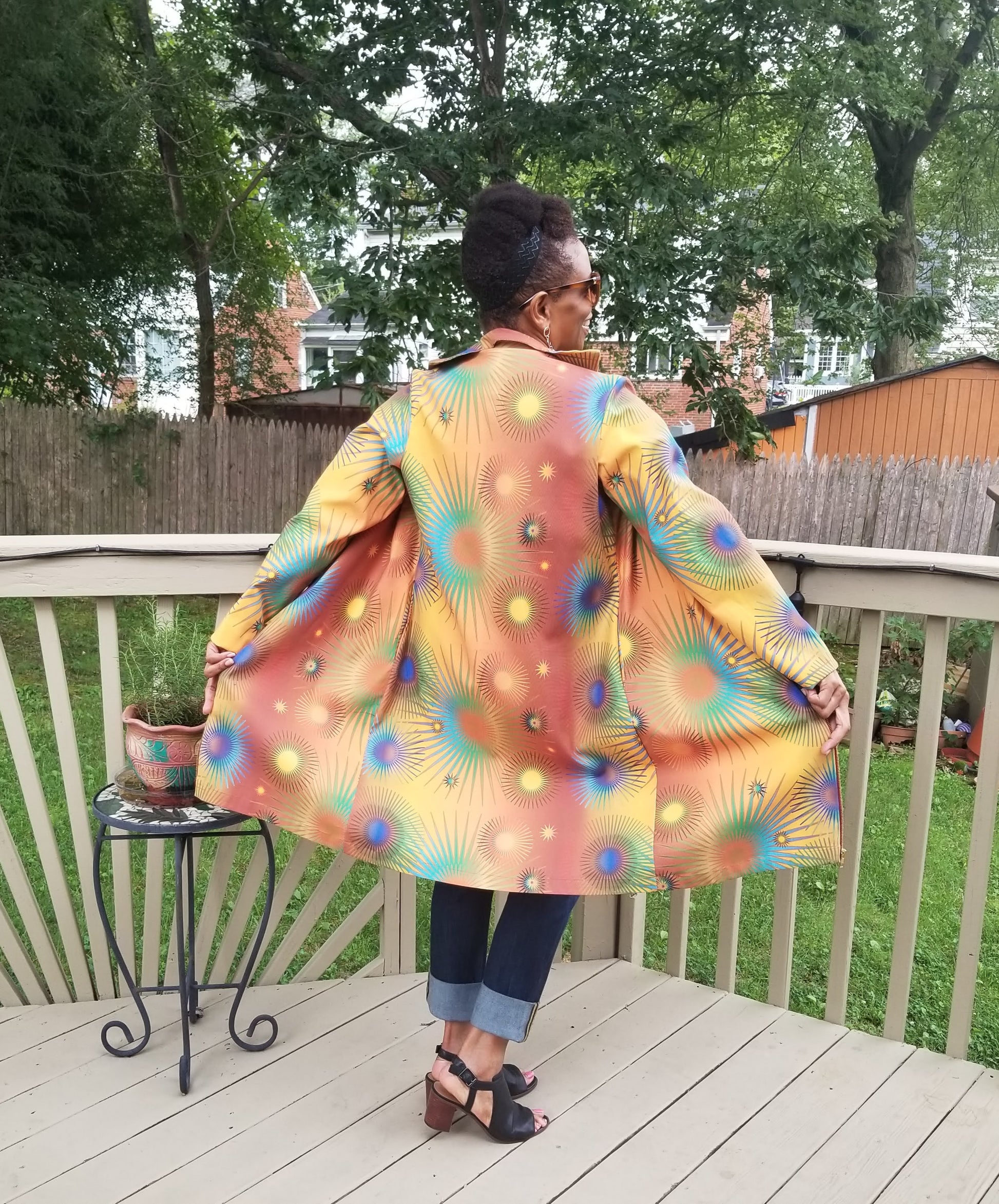 Who says a coat has to look drab? That definitely is not the case with our "High Vibrations" Coat, printed with our original artwork. When you step out in it you will feel as energetic as its name, and others around you will be in awe. It's the perfect weight for Fall weather and can also be worn as a topper over anything from jeans to a little black dress. It's the perfect addition to your wardrobe.