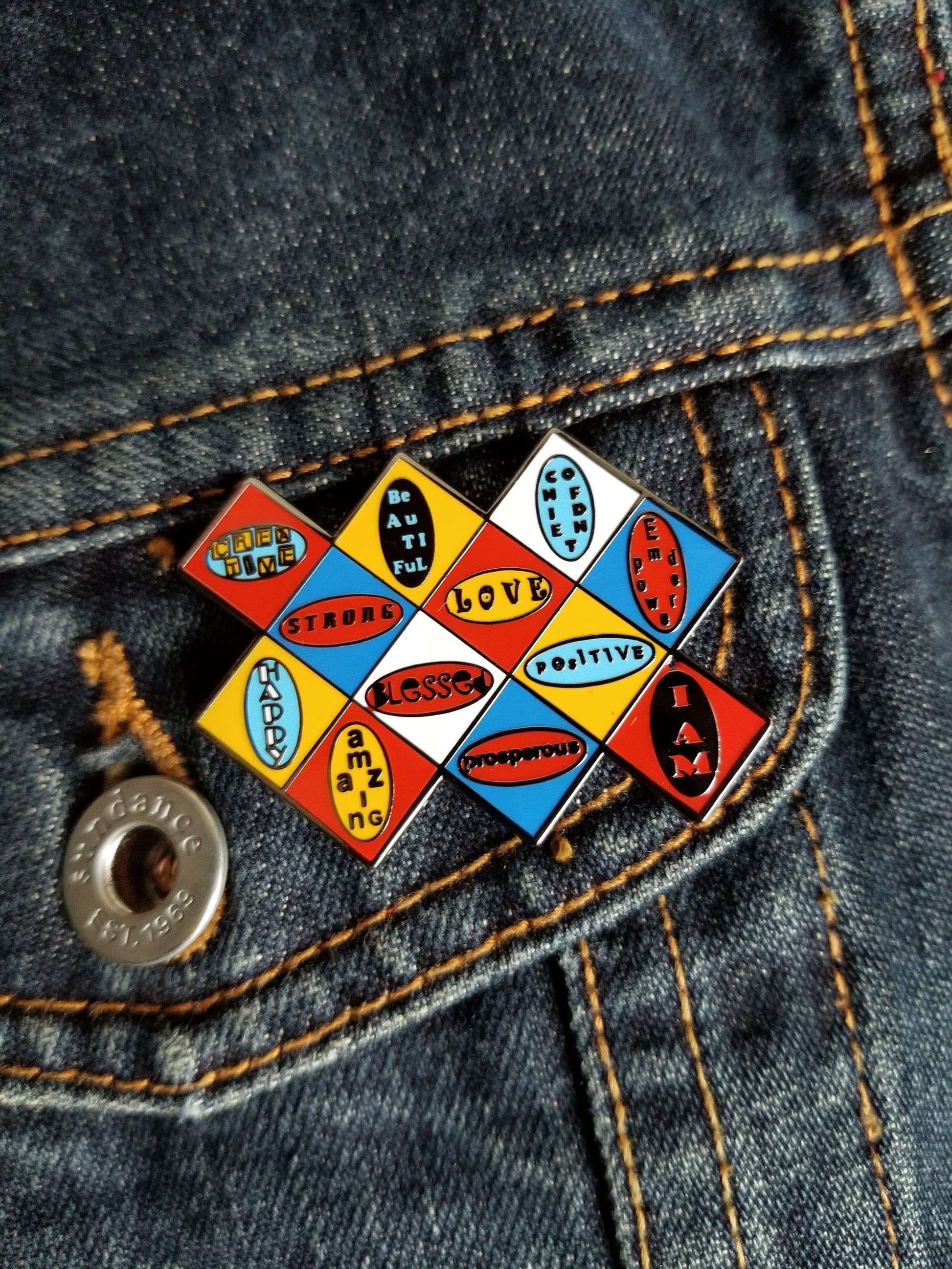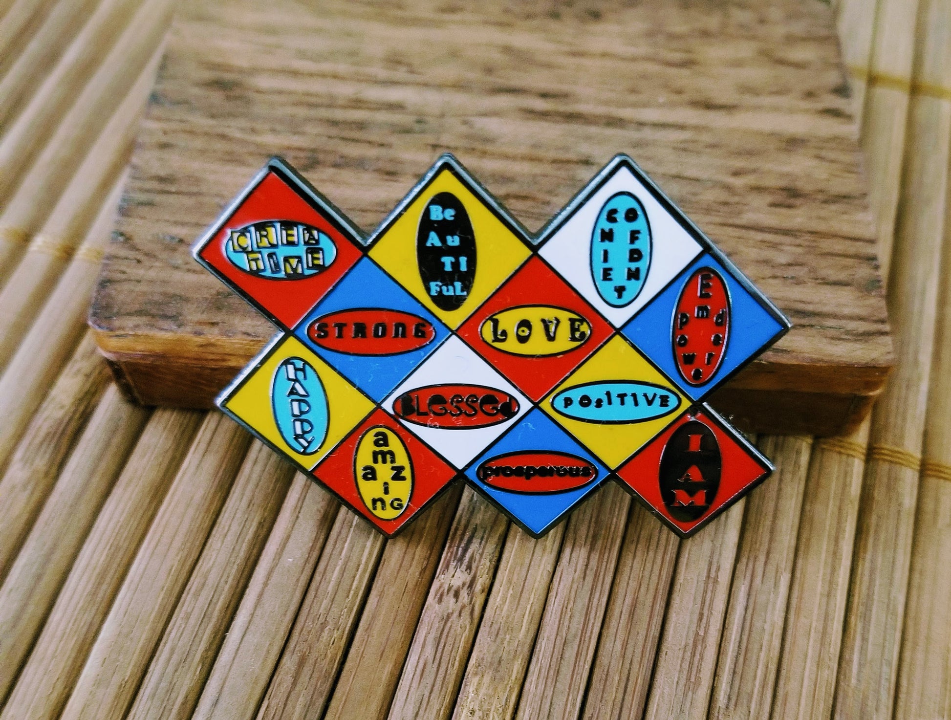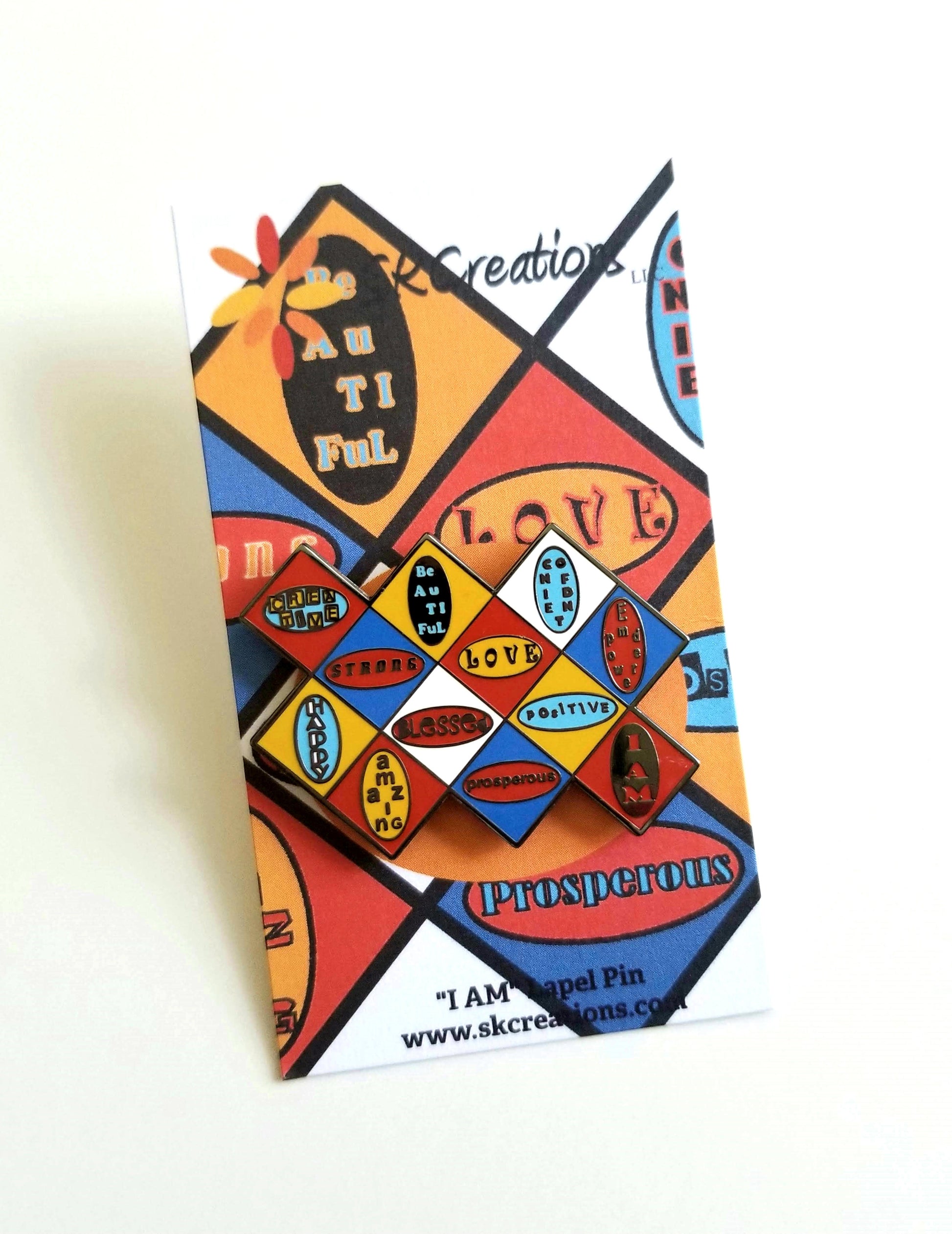 Our "I AM" original design focuses on positive daily affirmations and promotes feelings of self worth and self respect. The newest product addition in this series is a lapel pin designed with a number of "I AM" declarations. The pin reminds us that anything you say behind those two words becomes your reality, and it is important for every female and male, young or old, to know and believe in their self worth.