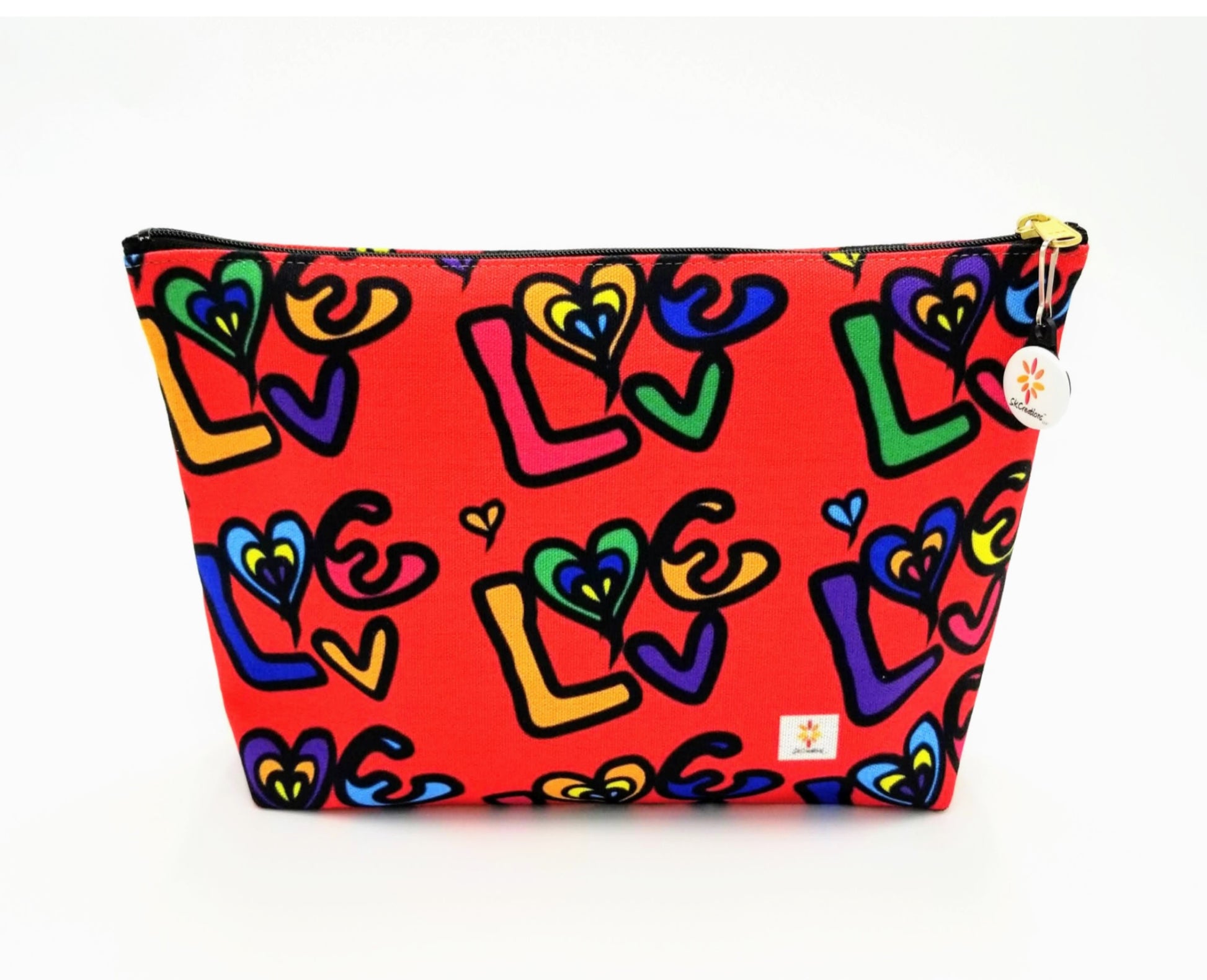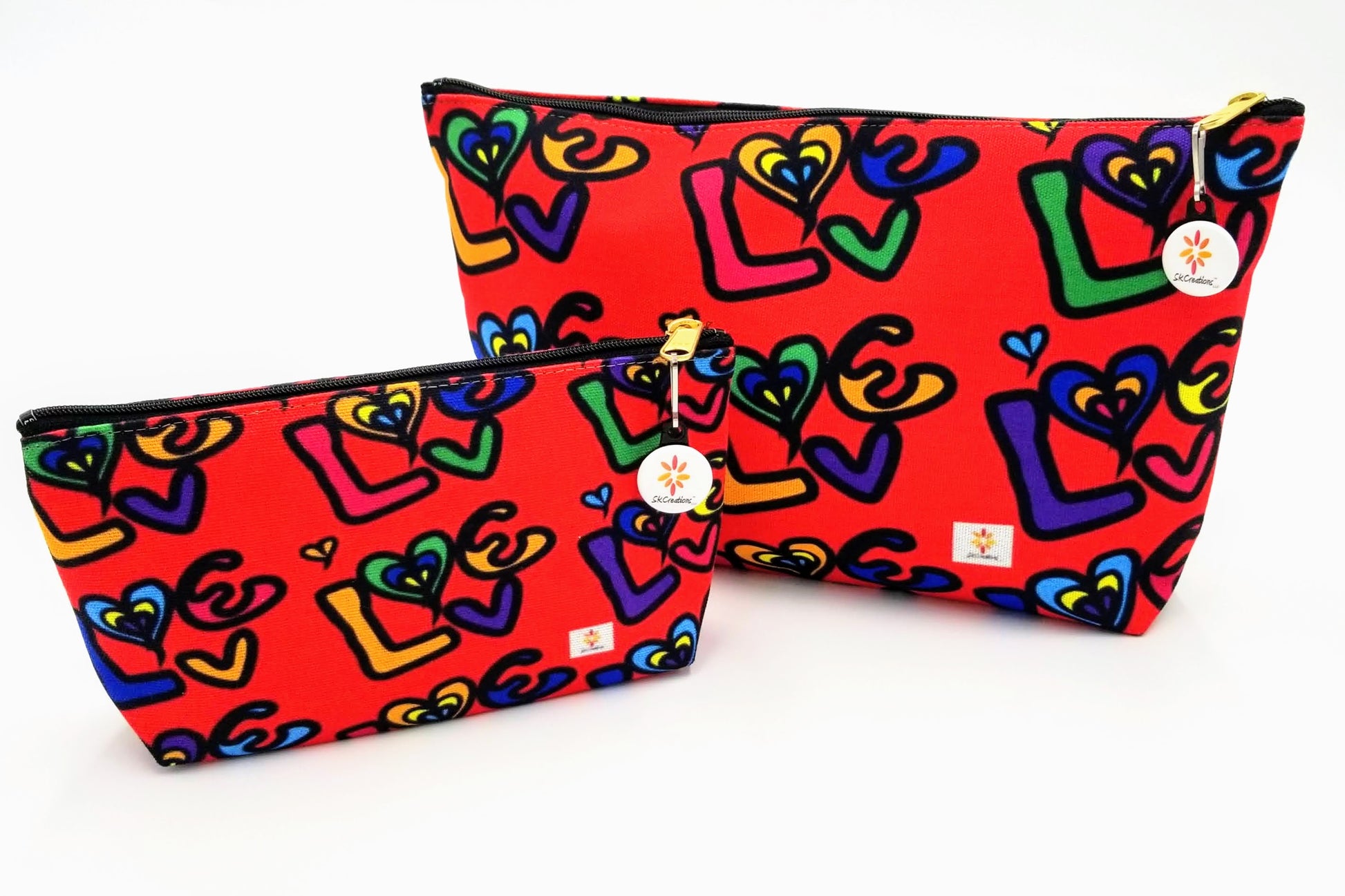 Our original artwork "Love 2" © digitally printed onto T-Bottom Accessory Pouches. Choose the Small or Large Pouch to keep all of your accessories organized.