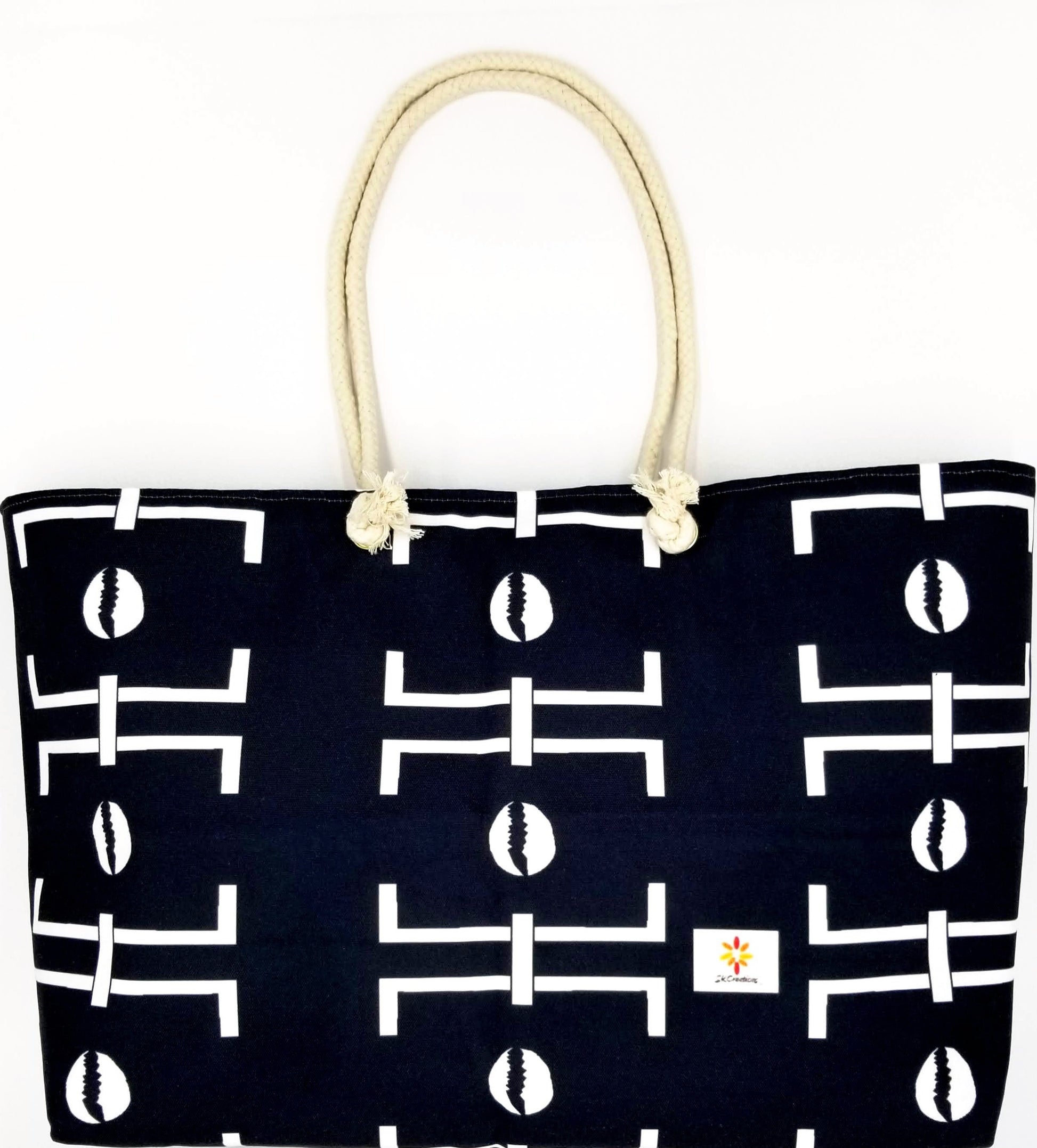 - 27” Cotton Rope Handles fed through metal grommets and knotted